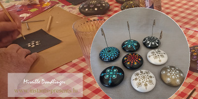 Accessible à tous les niveaux, sans connaissances préalables. Matériel inclus. Vous emporterez votre pierre mandala chez vous; elle peut également faire un très beau cadeau.