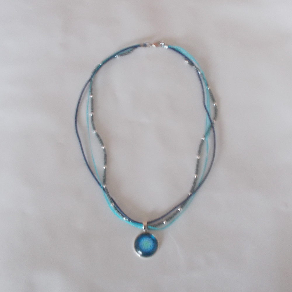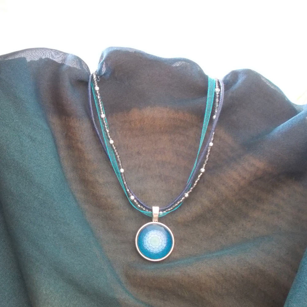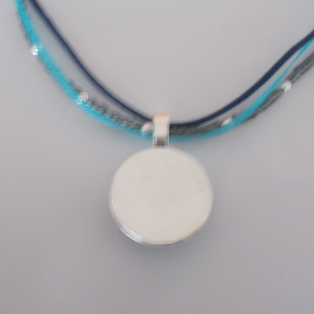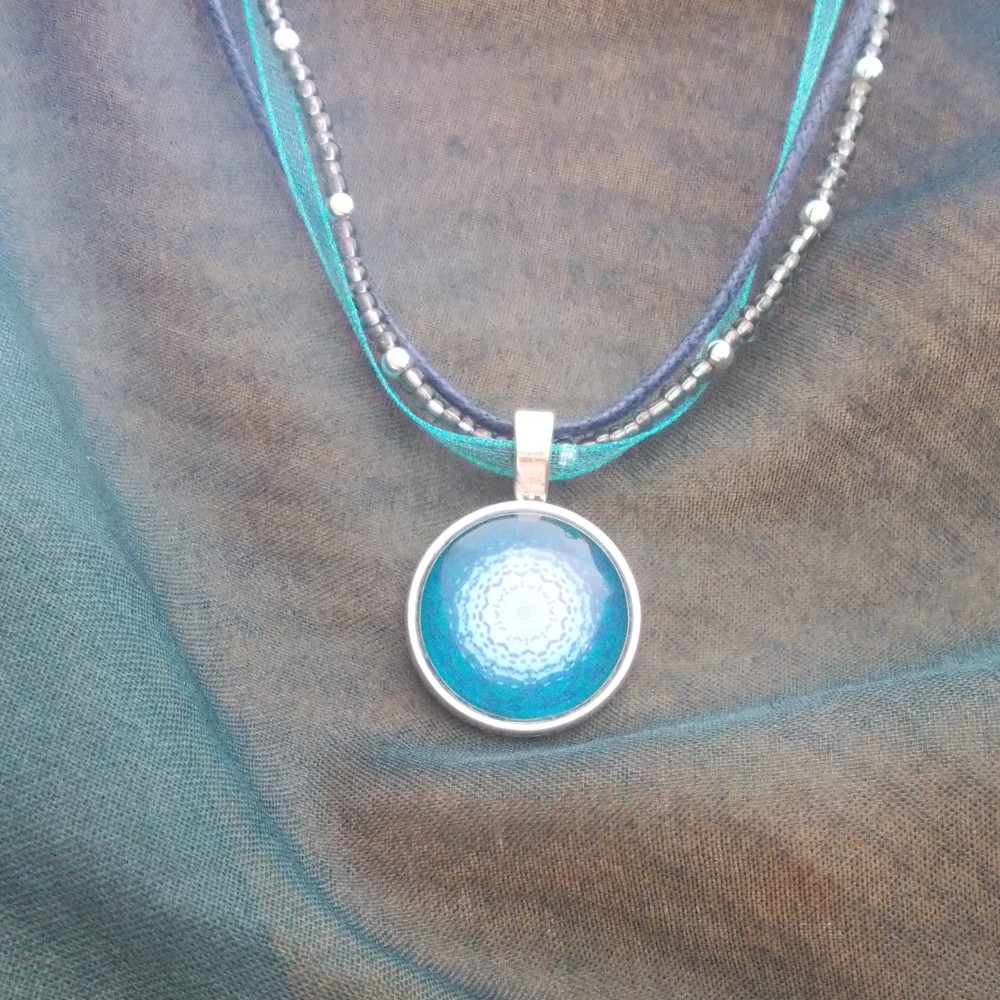 • metallic pendant with curved glass cabochon