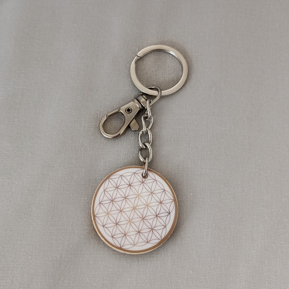 Une face avec la Fleur de Vie (motif imprimé). La fleur de vie est une forme géométrique sacrée utilisée depuis des millénaires dans diverses traditions du monde. C'est un symbole très puissant. L'autre face avec le symbole OM (paint à la main)