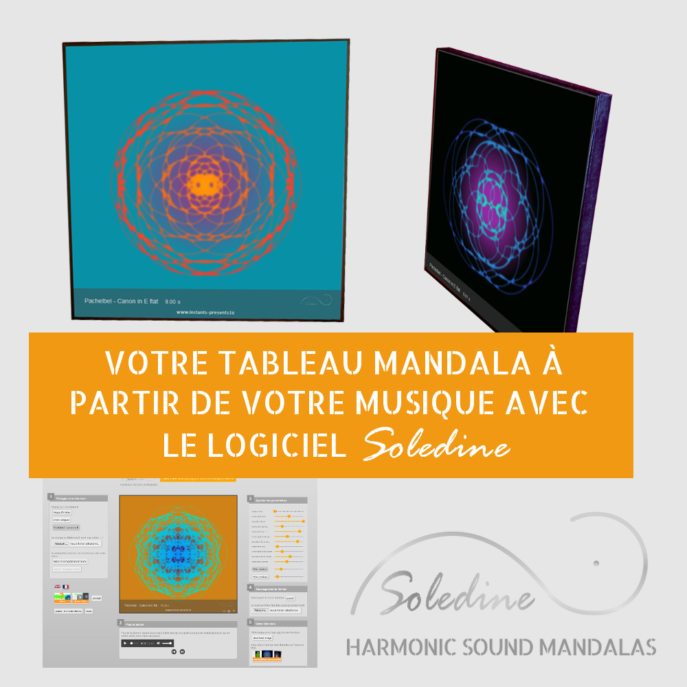 1) Créez votre Mandala avec le logiciel Soledine (accessible gratuitement en ligne) : ce logiciel permet de visualiser votre musique sous forme de Mandala. Puis sauvez le fichier Mandala. Infos sur le logiciel: ici